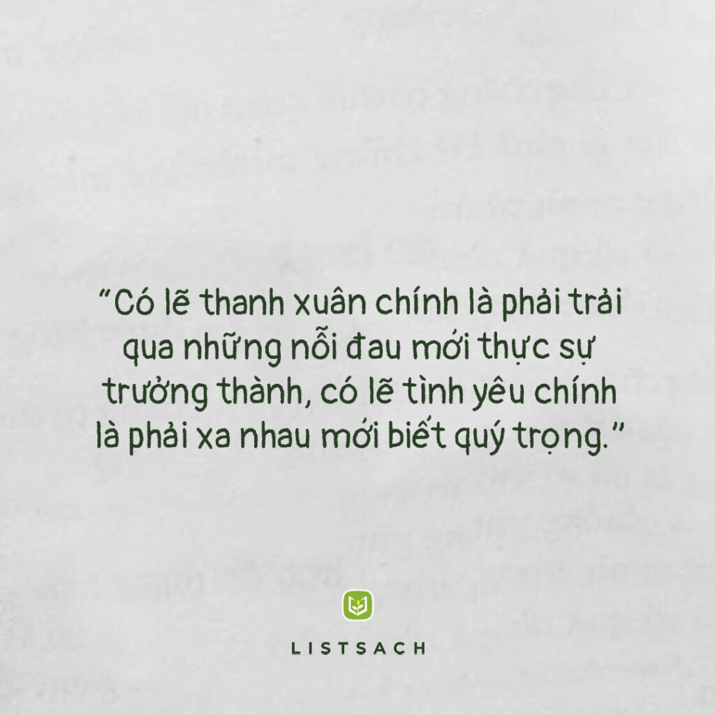 - “Có lẽ thanh xuân chính là phải trải qua những nỗi đau mới thực sự trưởng thành, có lẽ tình yêu chính là phải xa nhau mới biết quý trọng.”